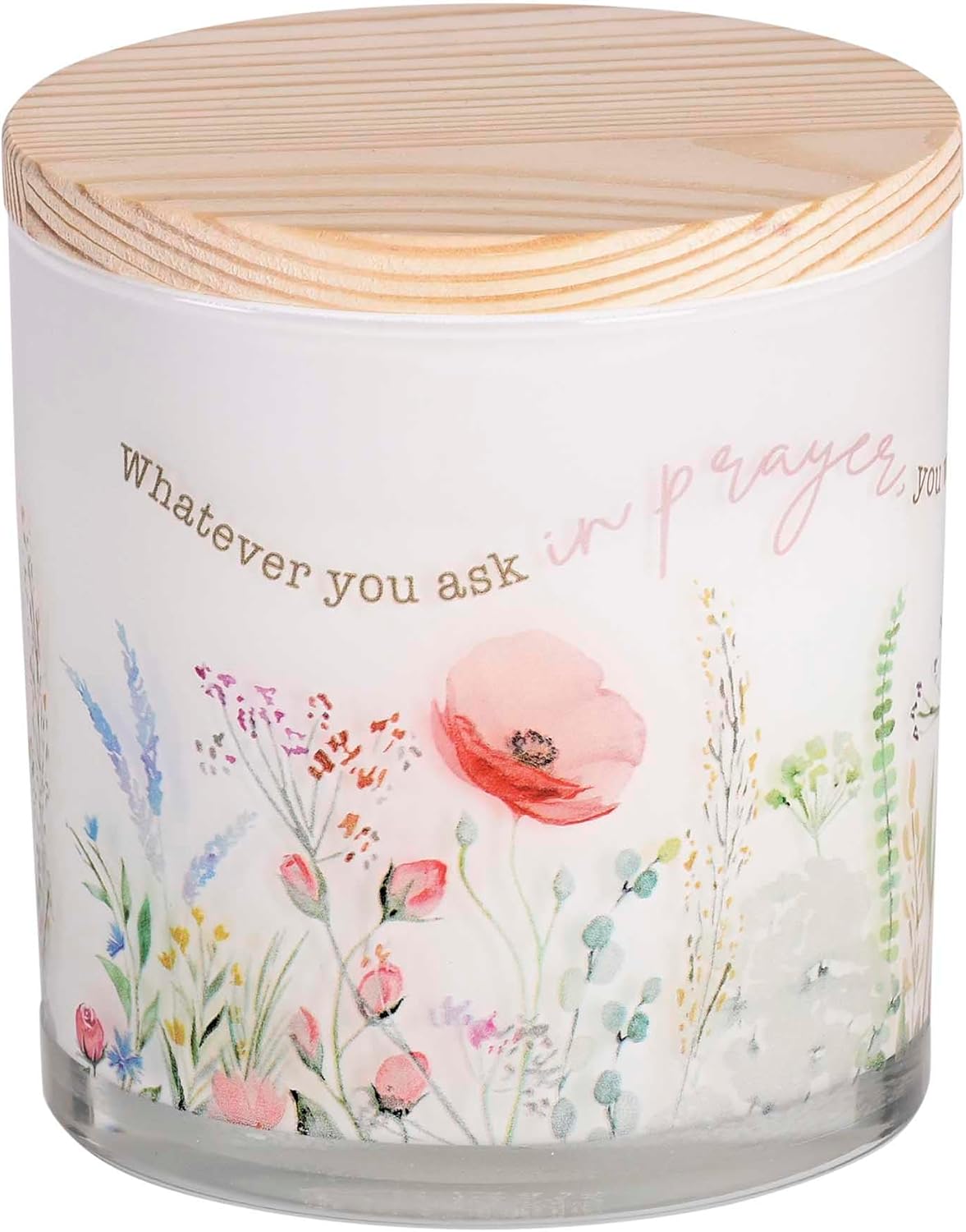 • Ignite inspiration with this warm and inviting candle that features the scripture, 'Whatever you ask in prayer, you will receive if you have faith'
