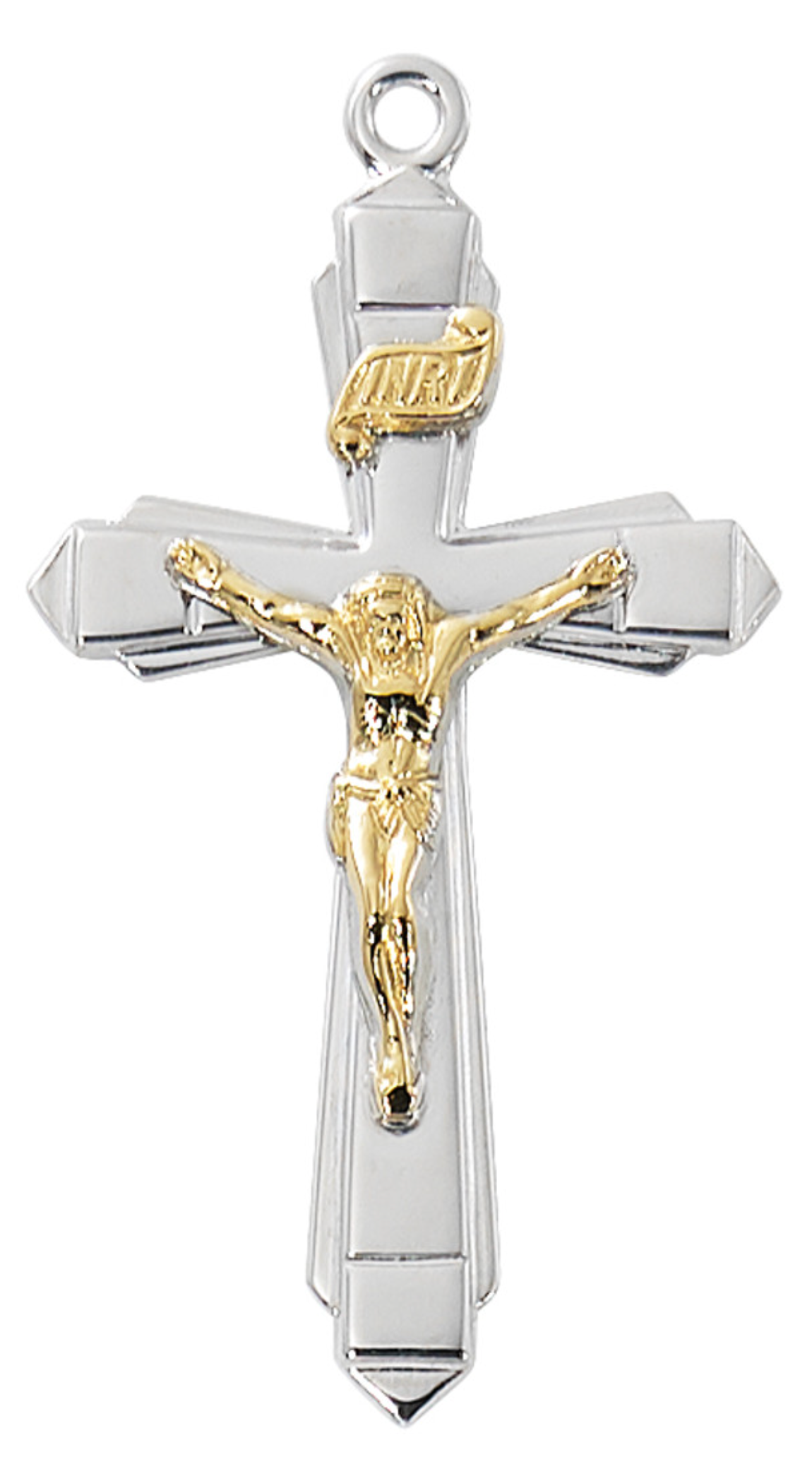 Two-Tone Sterling Silver Crucifix: 18" Chain