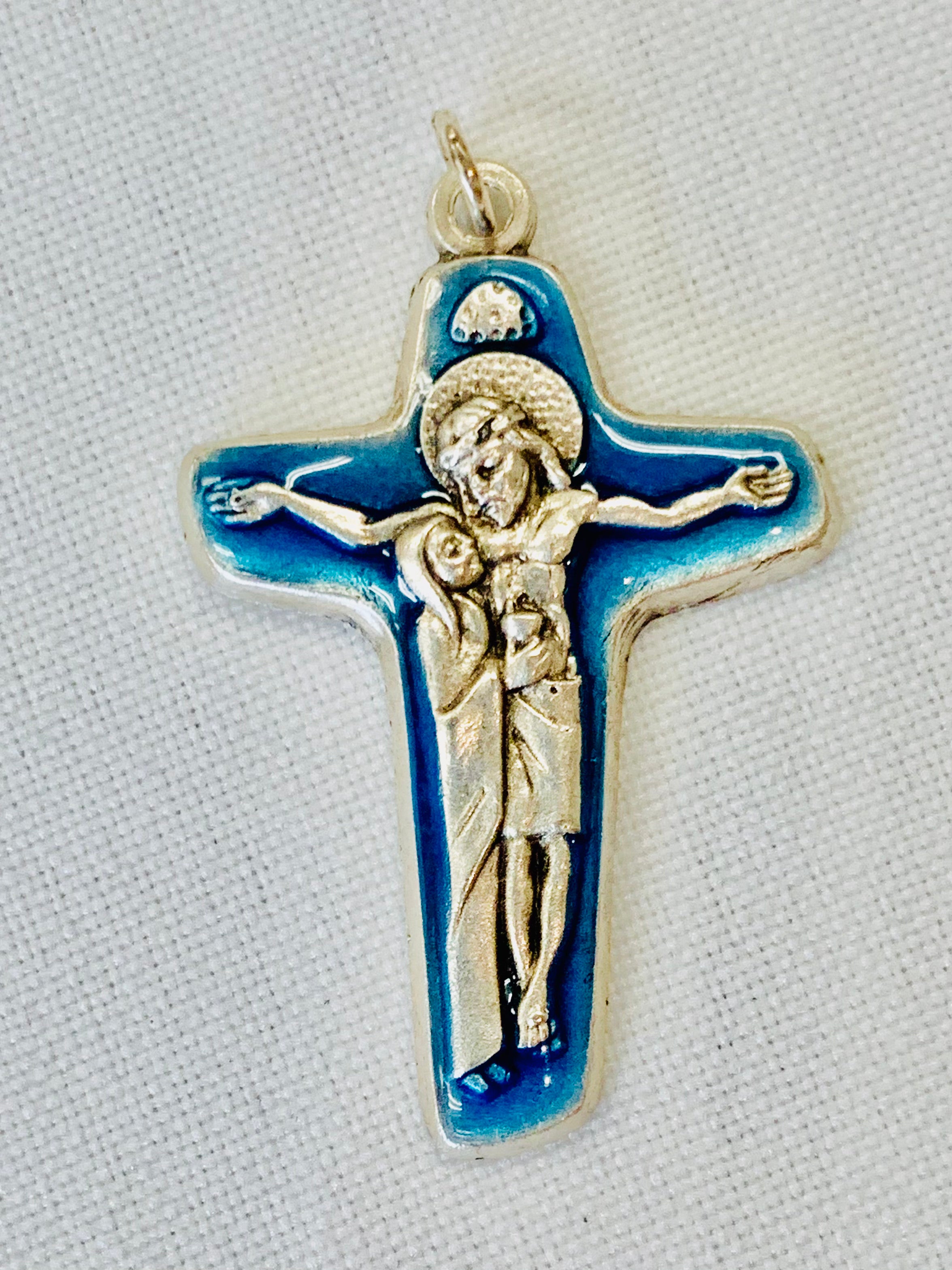 1 1/2" Blue Blessed Mother and Son Cross