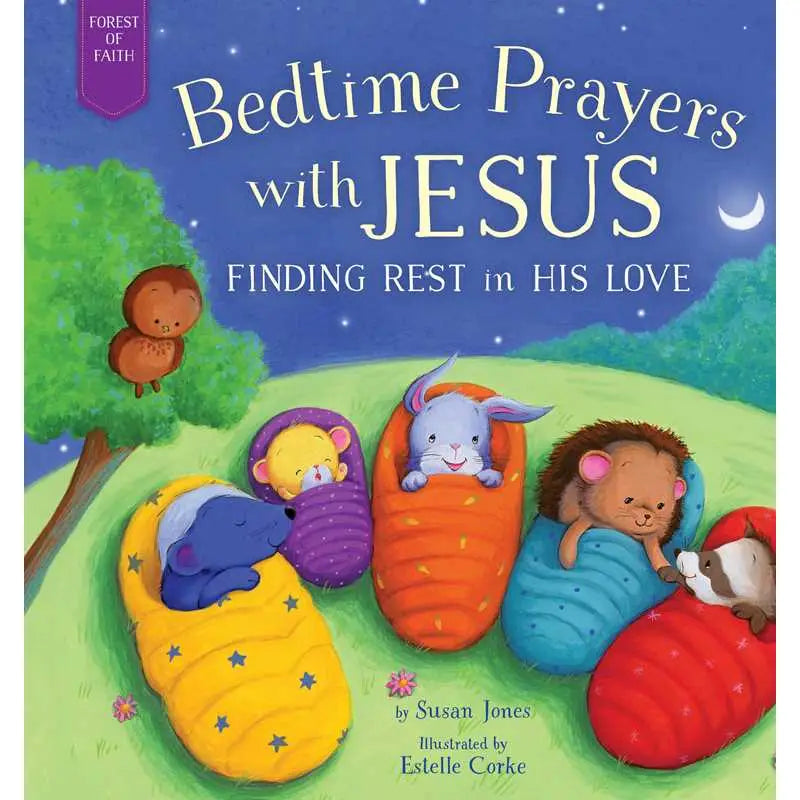 Bedtime Prayers with Jesus is the latest addition to the heartwarming Forest of Faith storybook series, including A Birthday Party for Jesus, Everyone Is Invited to Christmas, An Easter Basket Filled with Love, and God’s Love Is a Warm Cookie. This picture book will offer young children a fun, relatable story of forest friends who discover how they can always find comfort in Jesus through prayer.