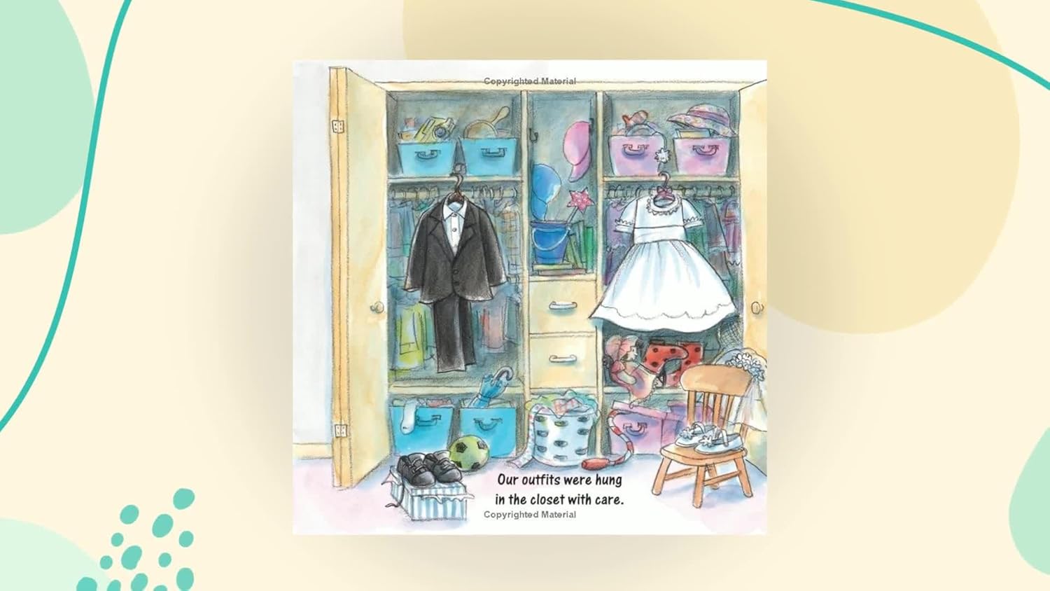 On the night before their First Communion, a brother and sister get ready for this important event. All the family is there--family, grandparents, godparents--to help them prepare for the following day.