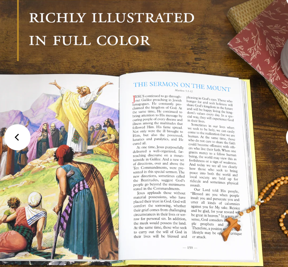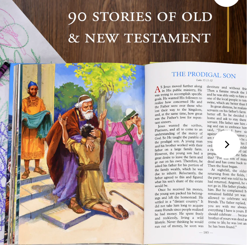 The New Catholic Children’s Bible by Rev. Thomas J. Donaghy is an excellent, highly acclaimed collection of Bible stories for kids. Set in large easy-to-read type, with durable sewn hardcover binding and beautiful, glossy illustrations, this Catholic storybook teaches important stories from the Bible. It’s been a favorite among Catholics for more than 15 years.