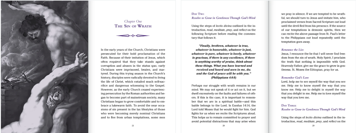 - A daily examination of conscience to help readers evaluate wins and growth areas.