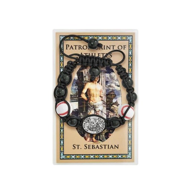 ADJUSTABLE CORDED BLACK WOOD ST. SEBASTIAN FOOTBALL BRACELET
