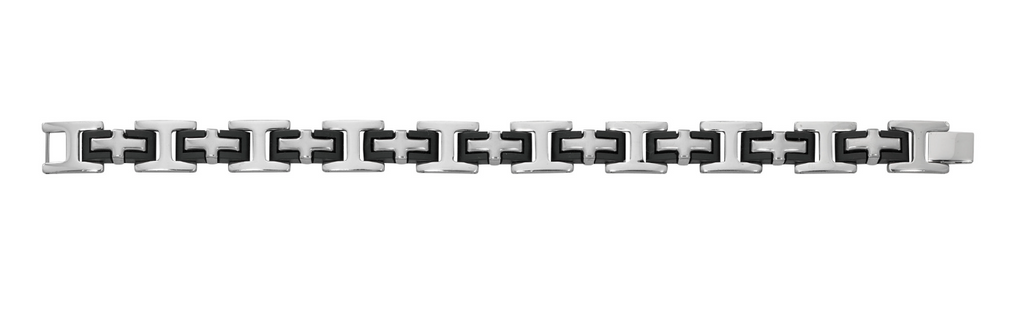 Men's Black Rubber and Stainless Steel Cross Bracelet
