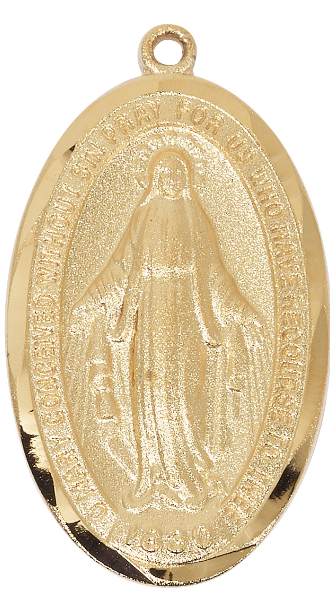 Gold Over Pewter Miraculous Medal: 24" Chain