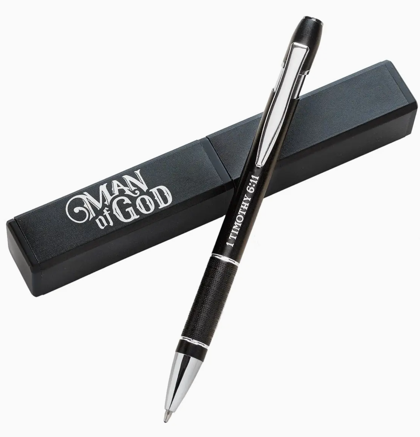 The Gift Pen: Man Of God – 1 Timothy 6:11 makes a great Christian gift for any man of God who is growing on his faith journey. Whether he’s heading to college, moving to a new city for a job or starting graduate school, The Man Of God Gift Pen is an ideal gift when he’s jotting down notes in class or Bible study, journaling or studying for exams. The Scripture reference of 1 Timothy 6:11 on the Christian gift pen will remind him to stay strong as a man of God, and it may even prompt questions from new people in his life who notice the pen, which invites a wonderful opportunity for him to share the Good News. Christian gift pen with Scripture reference 1 Timothy 6:11, Screen-printed title on barrel, Package in a hard plastic gift case