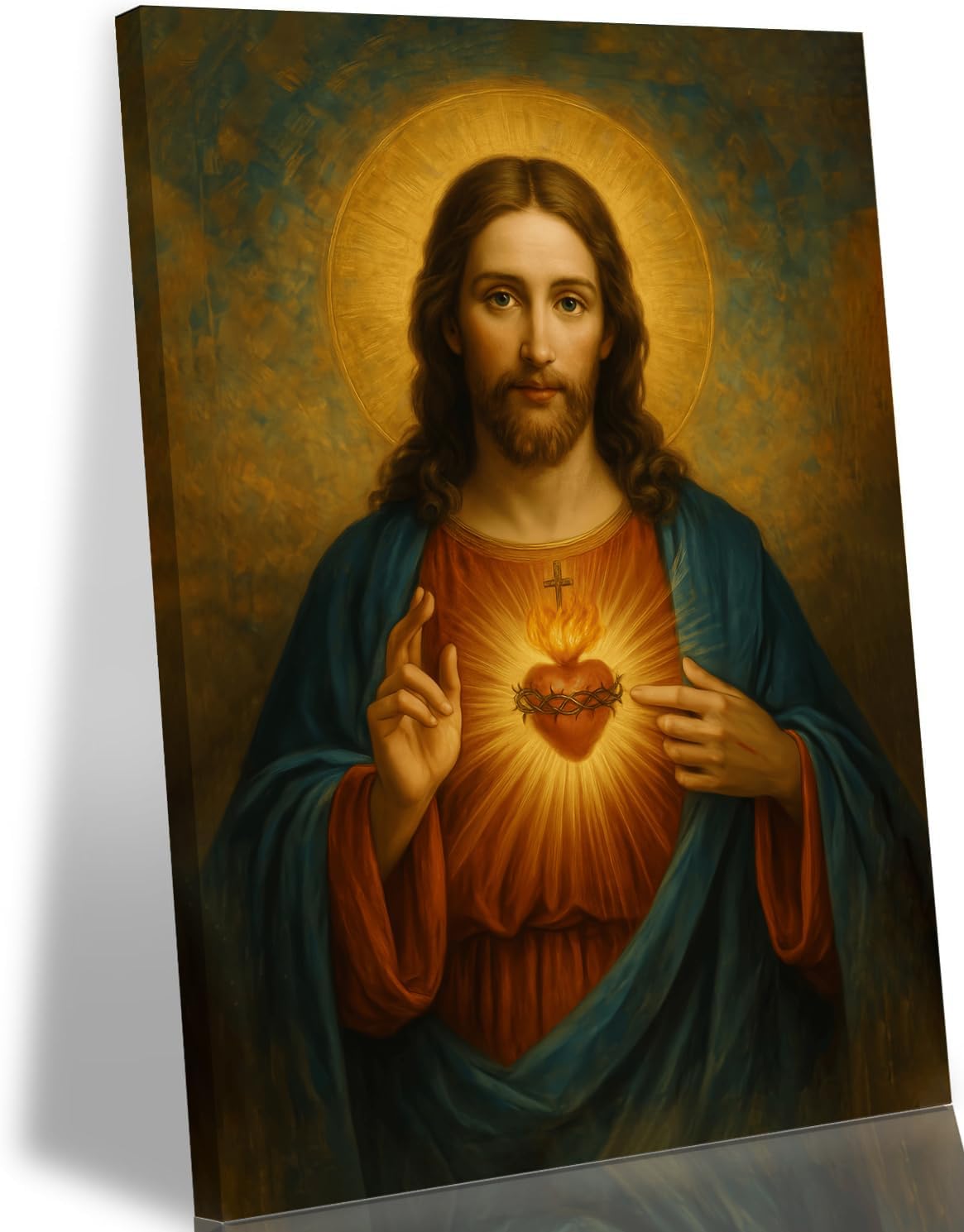 Sacred Heart of Jesus Canvas – 12x16in Ready to Hang Bring divine inspiration into your home with this 12x16in Sacred Heart of Jesus canvas wall art. Professionally wrapped over a durable wooden frame,