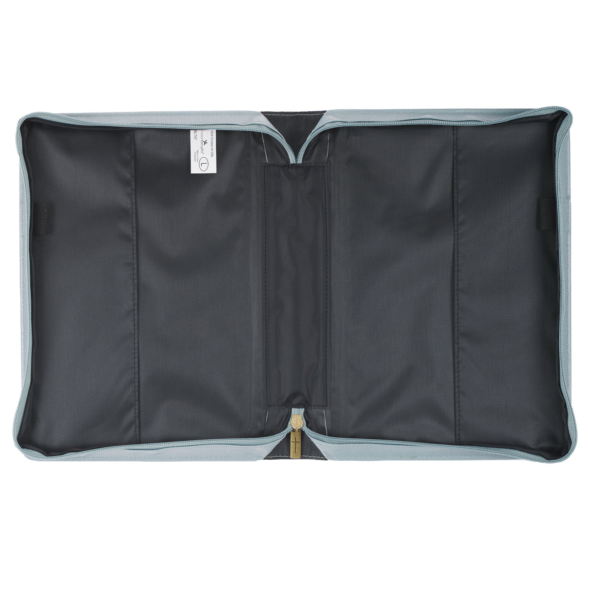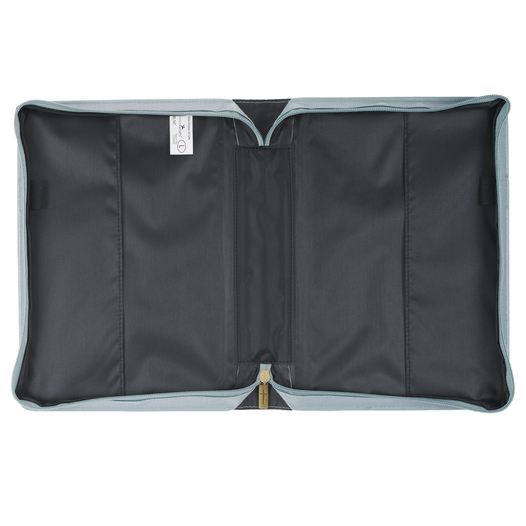 The Trust in the LORD Pearlescent Pewter Floral Fashion Bible Cover is a beautiful way to protect your Bible from the wear and tear of daily use. Pink rose design, Pearlescent pewter faux leather, Screen-printed and design and text on front, Trust in the Lord with all your heart, Proverbs 3:5, Screen-printed text on back, Fashion Bible cover, Antique brass zipper pull engraved with cross, Lay-flat spine handle, Antique brass handle hardware, 2 interior pen loops, Exterior slip pocket.