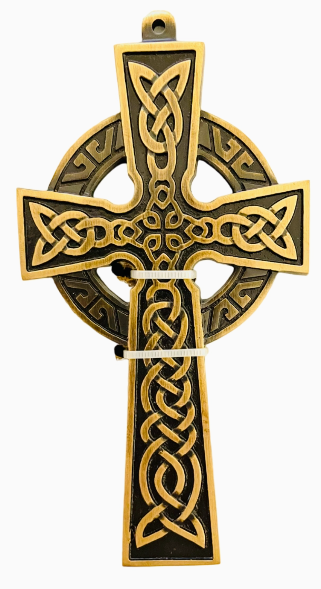 Crafted from durable solid brass with a beautiful brass finish, this standing cross is designed to last for years to come. Its luxurious appearance adds an elegant touch to any room, making it a perfect piece for displaying anywhere in your home. ■Featuring a traditional Celtic Cross design, this piece is adorned with intricate Celtic knotwork and trinity knots, paying homage to Ireland's rich cultural history. Its classic design makes it a timeless decoration that will never go out of style. ■Measuring 2.7 inches wide, 5.3 inches long, and 0.3 inches high, this standing cross is the perfect size for hanging on a wall or displaying on a table. Its compact size ensures that it won't take up too much space, while still making a statement. ■Presented in an elegant gift box, this Celtic Cross is the perfect gift for any occasion. Whether it's for a wedding, St Patrick’s Day or just because, this piece is sure to impress your loved ones.