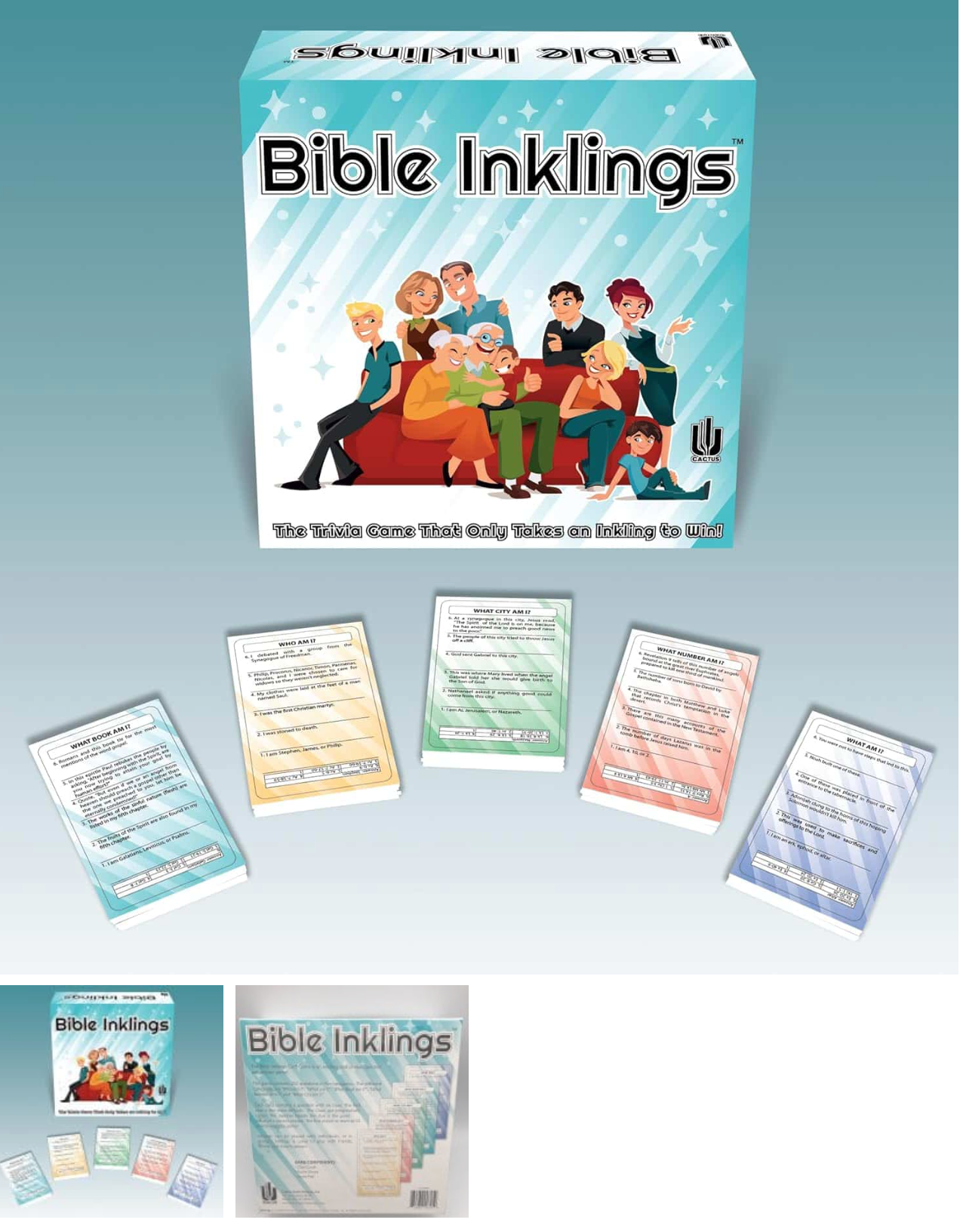 Bible Inklings is the trivia game that only takes an Inkling to win. The game contains 252 questions in five categories. The different categories are “Who am I?”, “What am I?’, “What Book am I?”, ‘What Number am I?” and “What City am I?” Each card contains a question with six clues. The first clue is the most difficult. The Clues get progressively easier. The number beside the clue card is the point value of a correct answer. Answer the question using as few clues as needed. Be the first player or team to earn 55 points and answer the last question to win.
