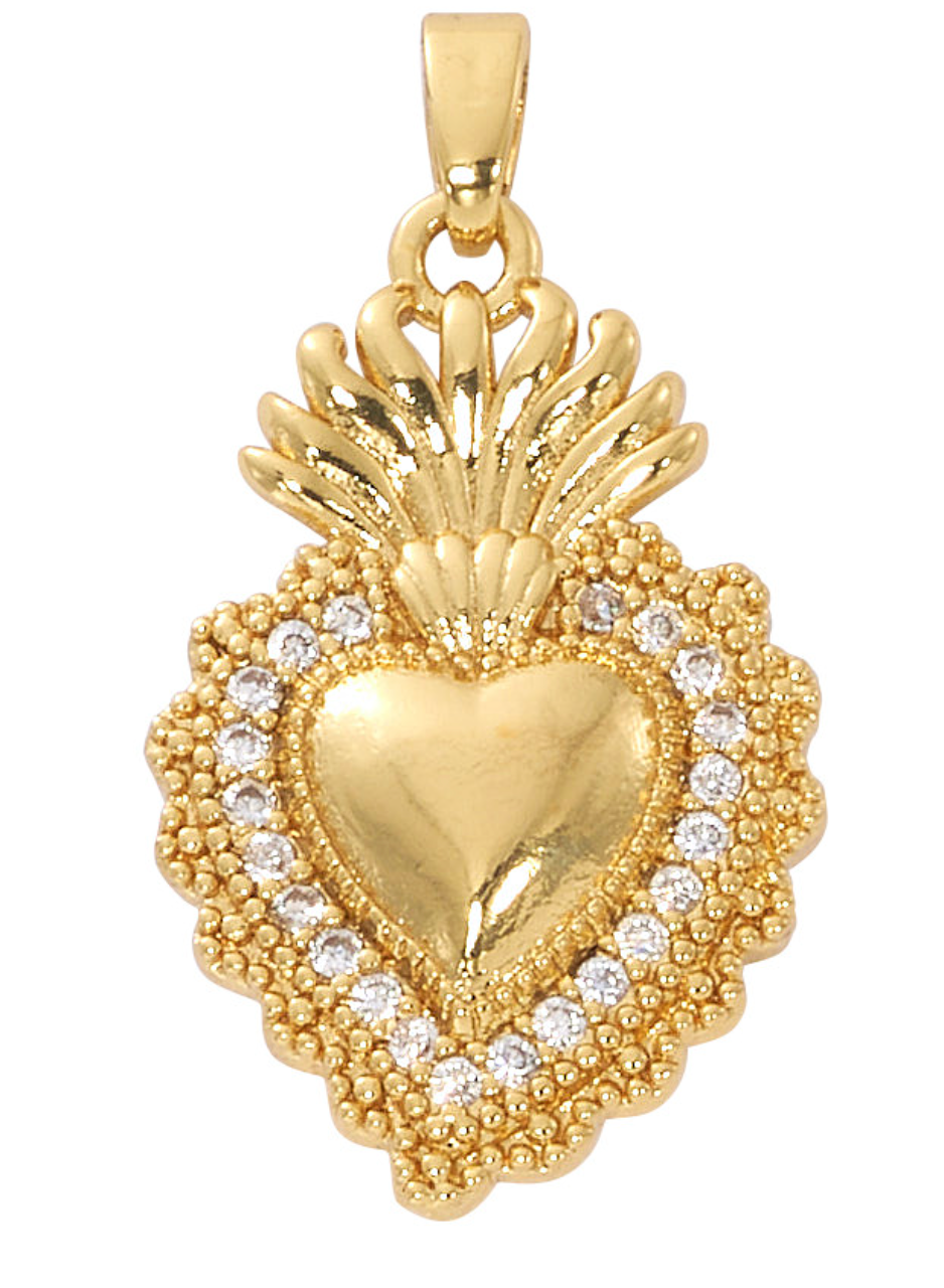 GOLD PLATED COPPER HEART OF JESUS WITH CRYSTAL STONES. COMES ON A 16-18" ADJUSTABLE CHAIN AND GIFT BOX.