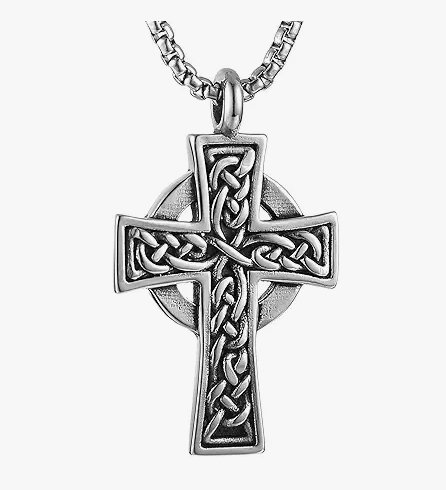 Stainless Steel Celtic Cross Necklace with Vintage Viking Irish Knot Amulet Pendant
