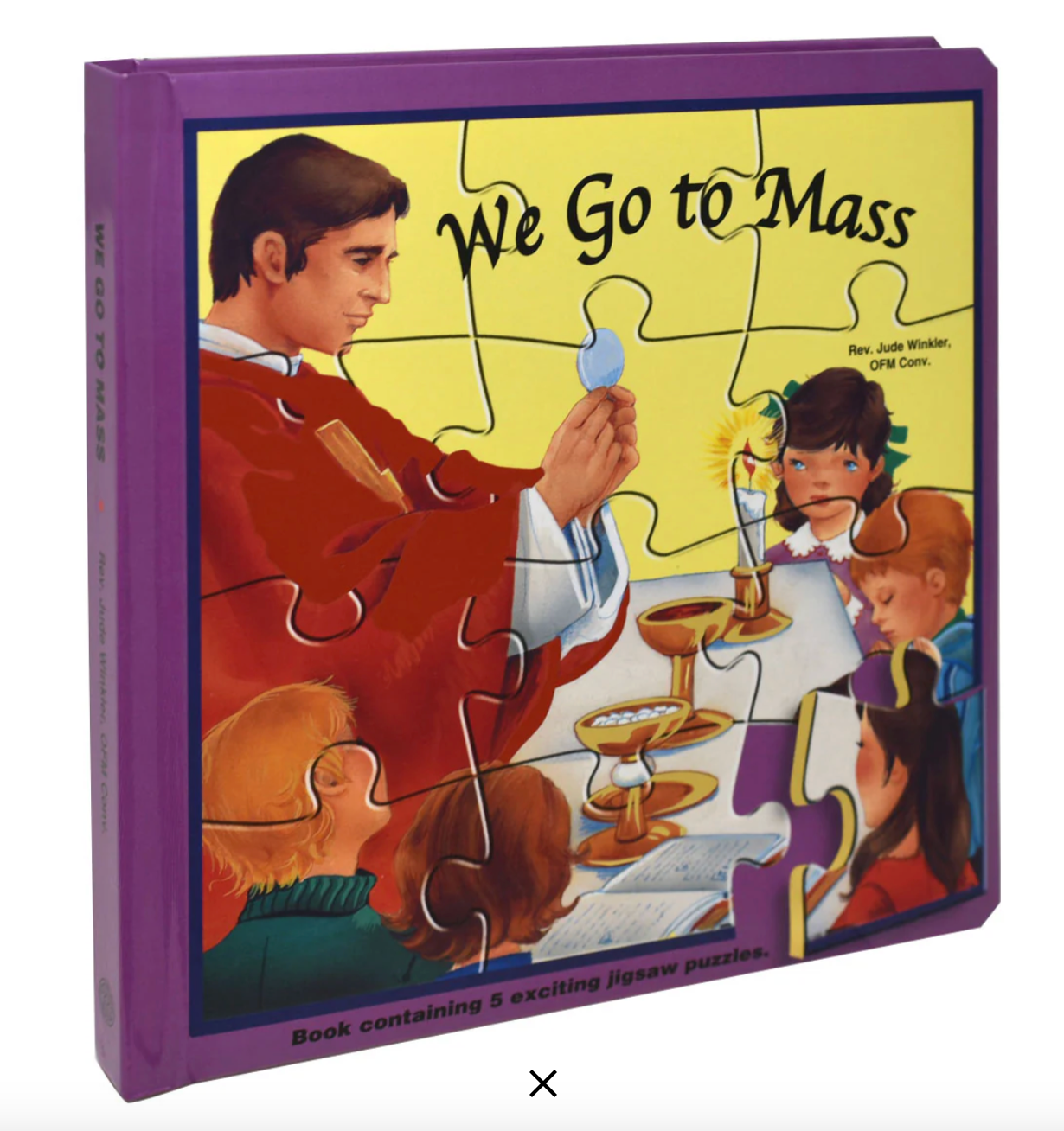 Part of a new series of books that will teach children about the Faith in a way that is interesting and challenging, this book contains five exciting jigsaw puzzles of twelve pieces each that help children learn about the parts of the Mass. Padded cover, foil stamping, and vibrant colors make this book a rich treasure for children and grandchildren.